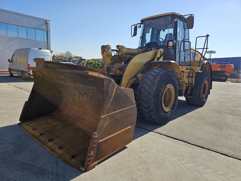 CAT 950H Komplet-Volan CE-Certifikat Težina 18.500 kg Godina 2008 Radni sati 11.638 Korpa 3,8 m3 Gume 40% Motor 146 kw Centralno mazanje Klima Kamera Prvi vlasnik iz Njemačke Dobro stanje Spreman za rad